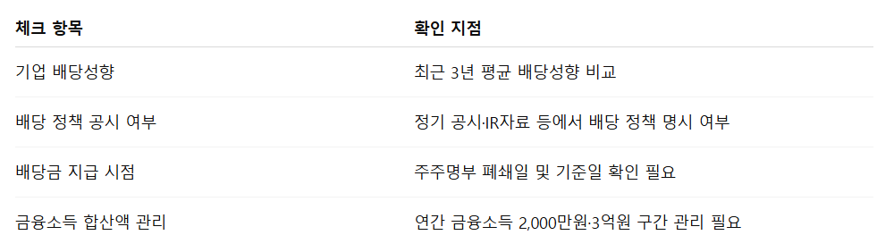 2025년 이후 배당투자 전략에서 확인해야 할 요소는 다음과 같습니다.