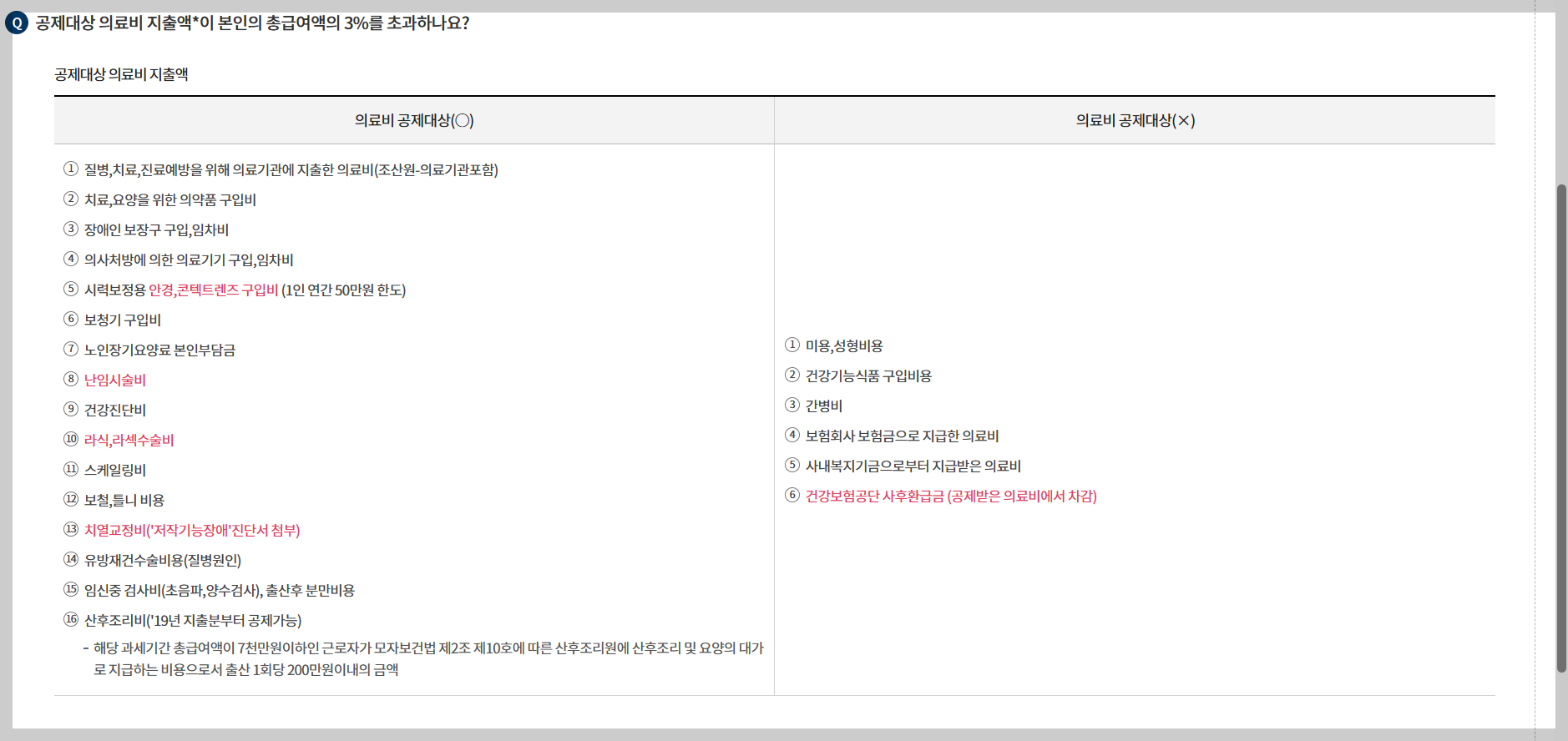 - 건강보험 비급여 진료비(단, 미용 목적 제외)